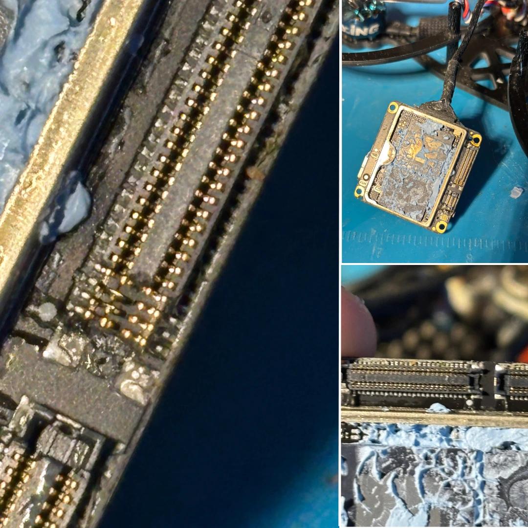 Reparación técnica tras intento fallido de impermeabilización. Reconstrucción del conector roto e impermeabilización profesional final con éxito.